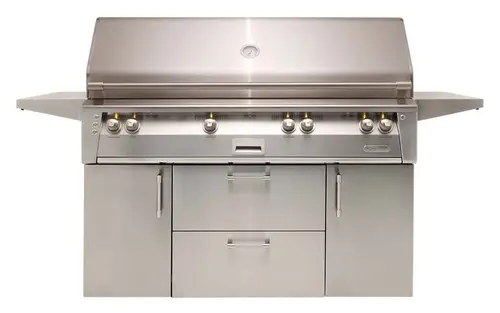 Alfresco 56 inch Deluxe Cart Grill 3 Burner ,Rotis, Double Door, Double Drawer, and Sear Zone