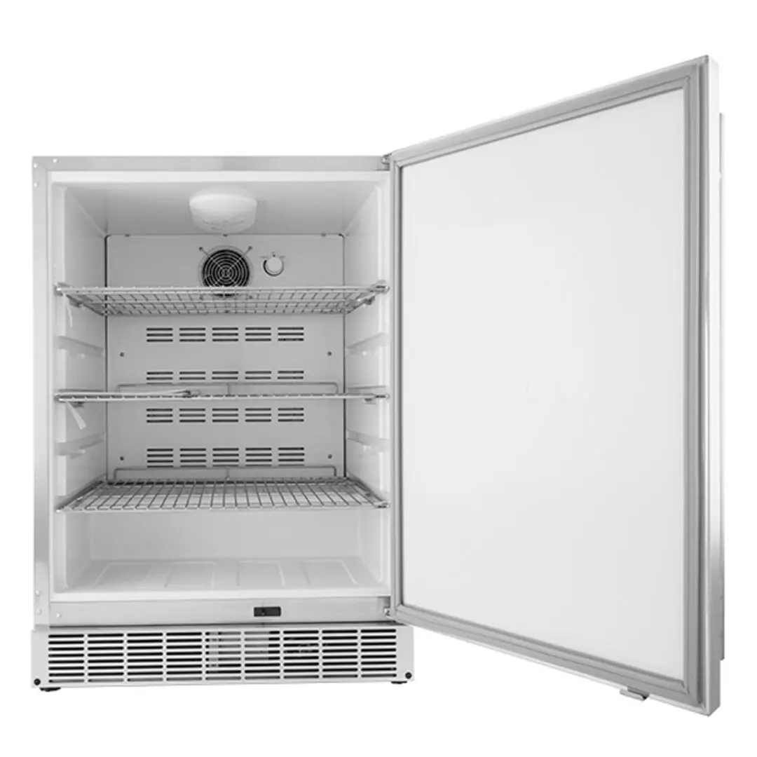 The All-Pro outdoor rated refrigerator is built to withstand any kind of weather. It is constructed out of Premium 304 stainless steel. The storage space is 5.5 cubic foot and has a interior cooling fan to cool products down in a hurry. This Industrial outdoor refrigerator comes with a interior light and a manual temperature adjustment dial.