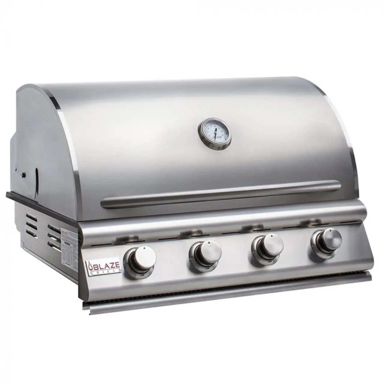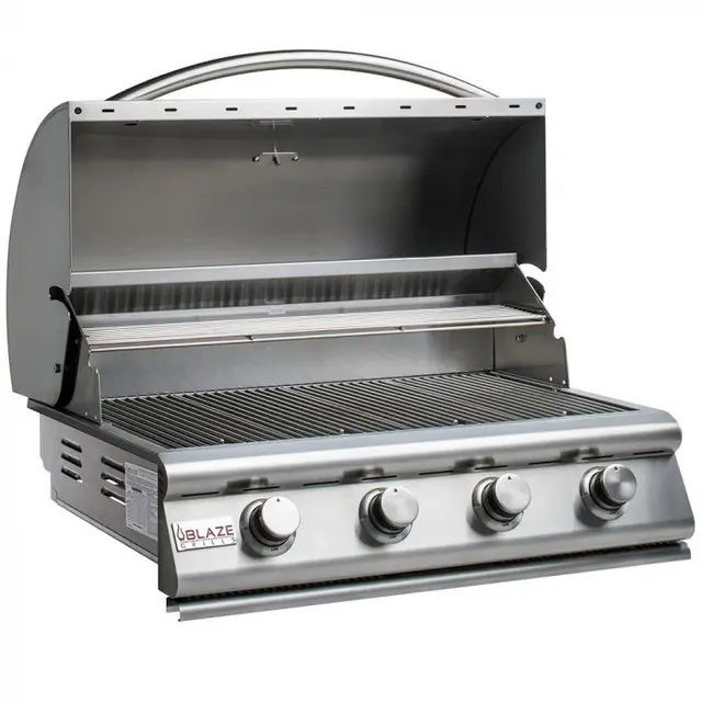 Blaze BLZ-4LBM Stainless Steel Built-In 4-Burner Gas Grill, 32-inch offers the perfect grill for any entry-level griller. Featuring 304 stainless steel construction, this grill features premium durability and is even approved for multi-user settings, so you know your grill can withstand the rigors of frequent use. The quality grill hood is also double-lined to protect from heat discoloration to keep your grill looking and performing like new. Inside the grill, durable searing rods enhance your grilling experience, while stainless steel heat zone separators allow for different types of cooking zones across the grill surface–grill either directly or indirectly as you wish! The flame stabilizing grid minimizes flare-ups, while a full-width drip tray makes clean-up simple. This grill features 14,000 BTU of cooking power per burner for a total cooking surface of 56,000 BTUs. A push and turn flame-thrower ignition system makes ignition simple, while a backup flash tube ignition provides an alternate ignition option if necessary.