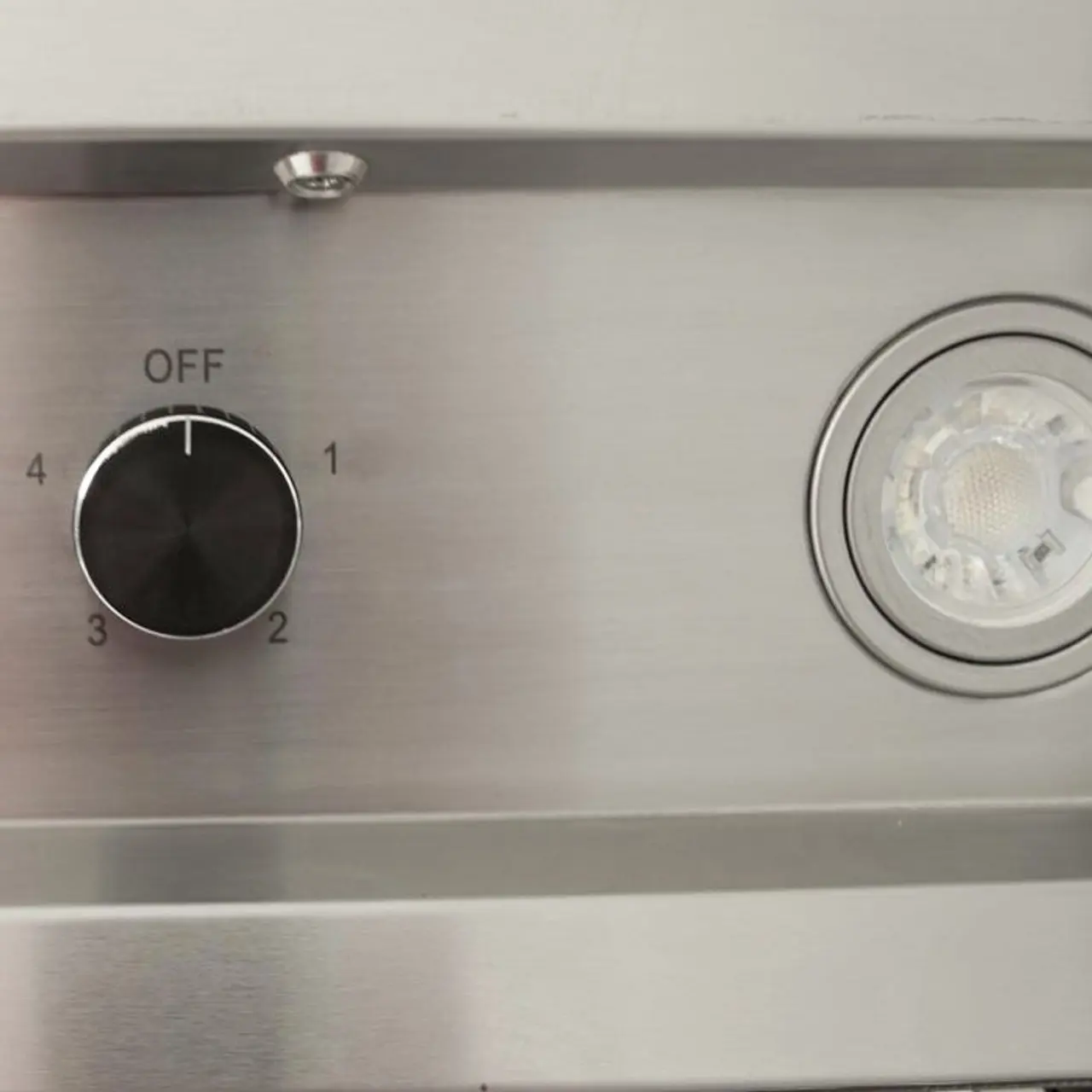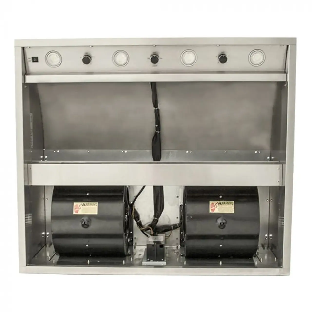Blaze BLZ-36-VHOOD 36-Inch Outdoor Vent Hood offers a high-end outdoor venting option. This unit features a complete 304 stainless steel construction for added durability and longevity, while the polished edges provide a clean, seamless look. A 1,000 CFM (Cubic Feet per Minute) fan clear your patio of smoke and grease, while the extra deep design allows the hood to be installed farther from the grilling surface for added comfort of the user. With its powerful design, this hood offers 60 percent greater suction than most competitors on the market on average. Four integrated LED lamps provide additional lighting for grilling in the dark, while innovative grease-free retractable controls with lighted facing offer added convenience.